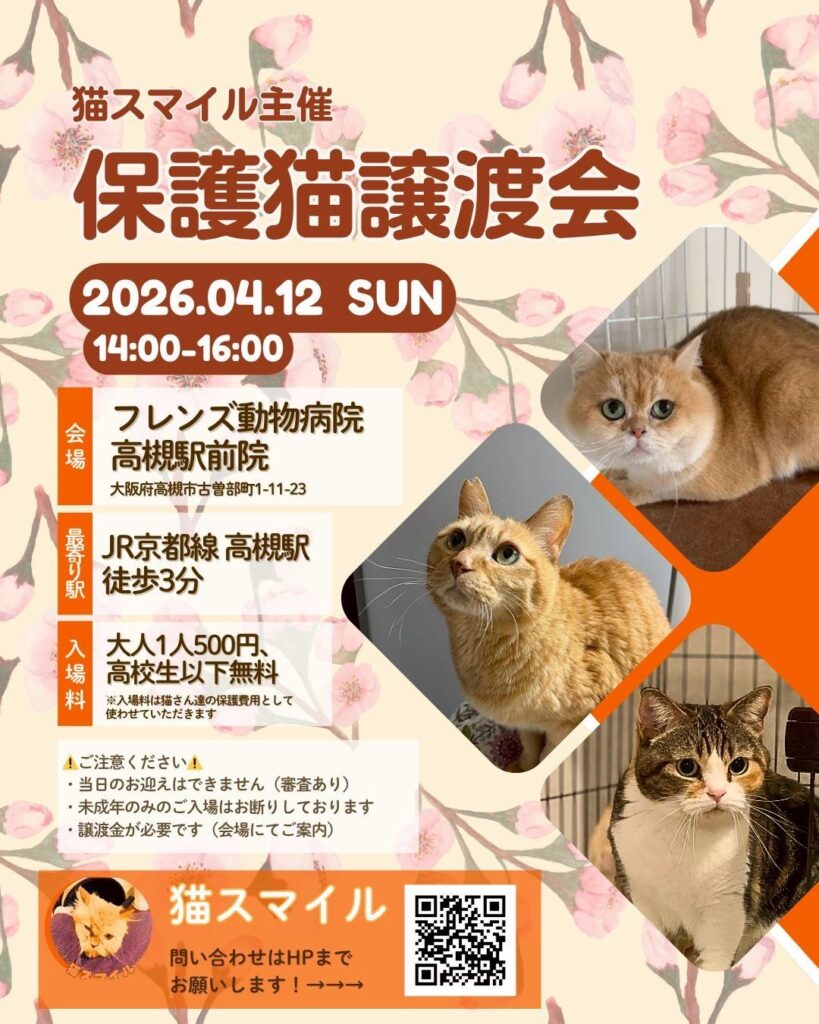 ・猫スマイルさん発行の下記チラシをご参照いただき、注意点等を十分にご確認ください